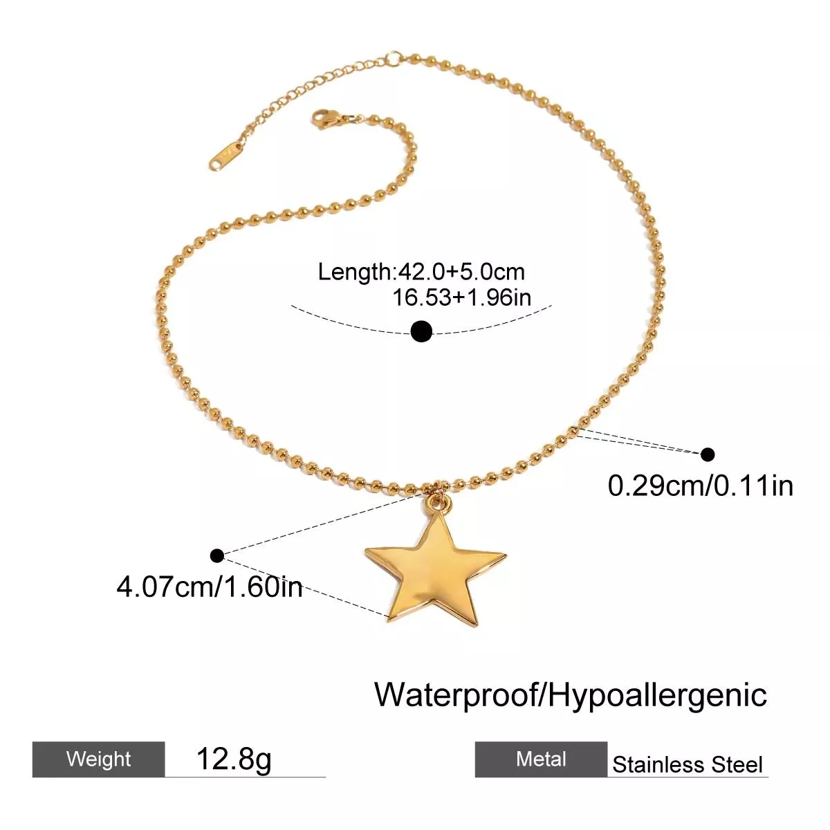 Elevate your everyday style with this 18K gold plated star pendant necklace, designed to add a touch of romance and charm to any outfit. Crafted with precision from durable stainless steel, this necklace features a delicate paper clip chain paired with a hollow pentagram star, creating a unique and modern look that stands out. Lightweight and comfortable, it sits perfectly on your neckline, making it ideal for layering or wearing alone for a subtle yet eye-catching statement.