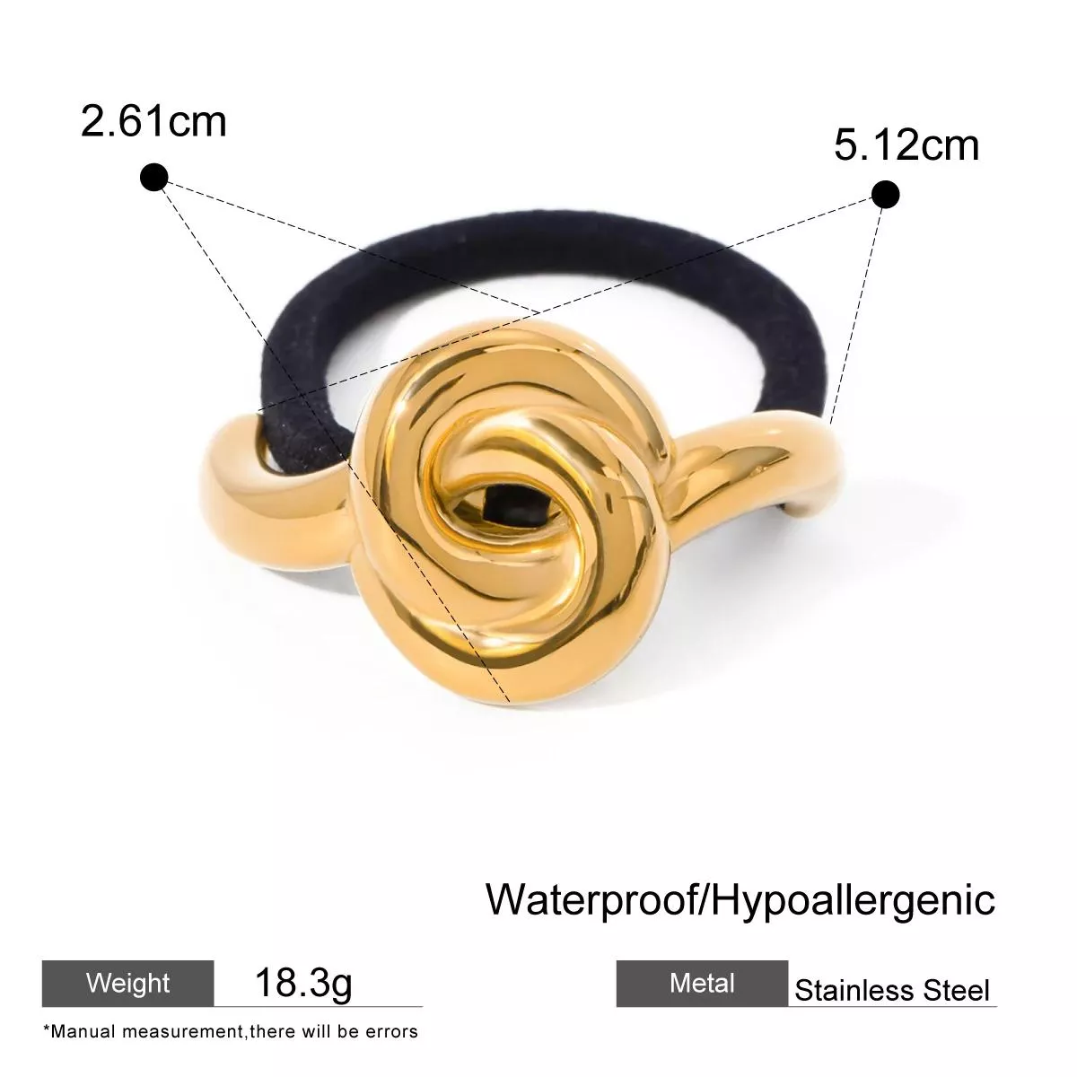 18K Gold Plated Twist Around U-Shaped Arc Black Rubber Hairbands