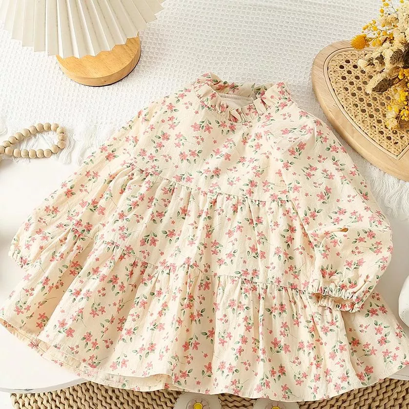 This versatile dress set is perfect for a variety of occasions, from family gatherings to birthday parties. The gentle pastel palette in shades of pink and beige aligns with the latest trends in children’s fashion, making it fashionable yet suitable for everyday play. Whether your little one is twirling at a party or simply enjoying a day at the park, she will feel special and stylish in this charming outfit.