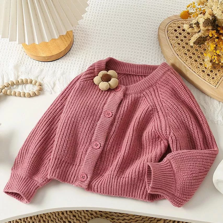 Our dress showcases a lovely ruffle-neck design and a tiered skirt that adds a playful touch. The included cardigan, accented with a flower brooch, perfectly complements the dress, creating an adorable layered look that is both warm and chic. Made with soft cotton, this outfit ensures your child stays cozy during the cool autumn and winter months, making it a must-have for their seasonal wardrobe.