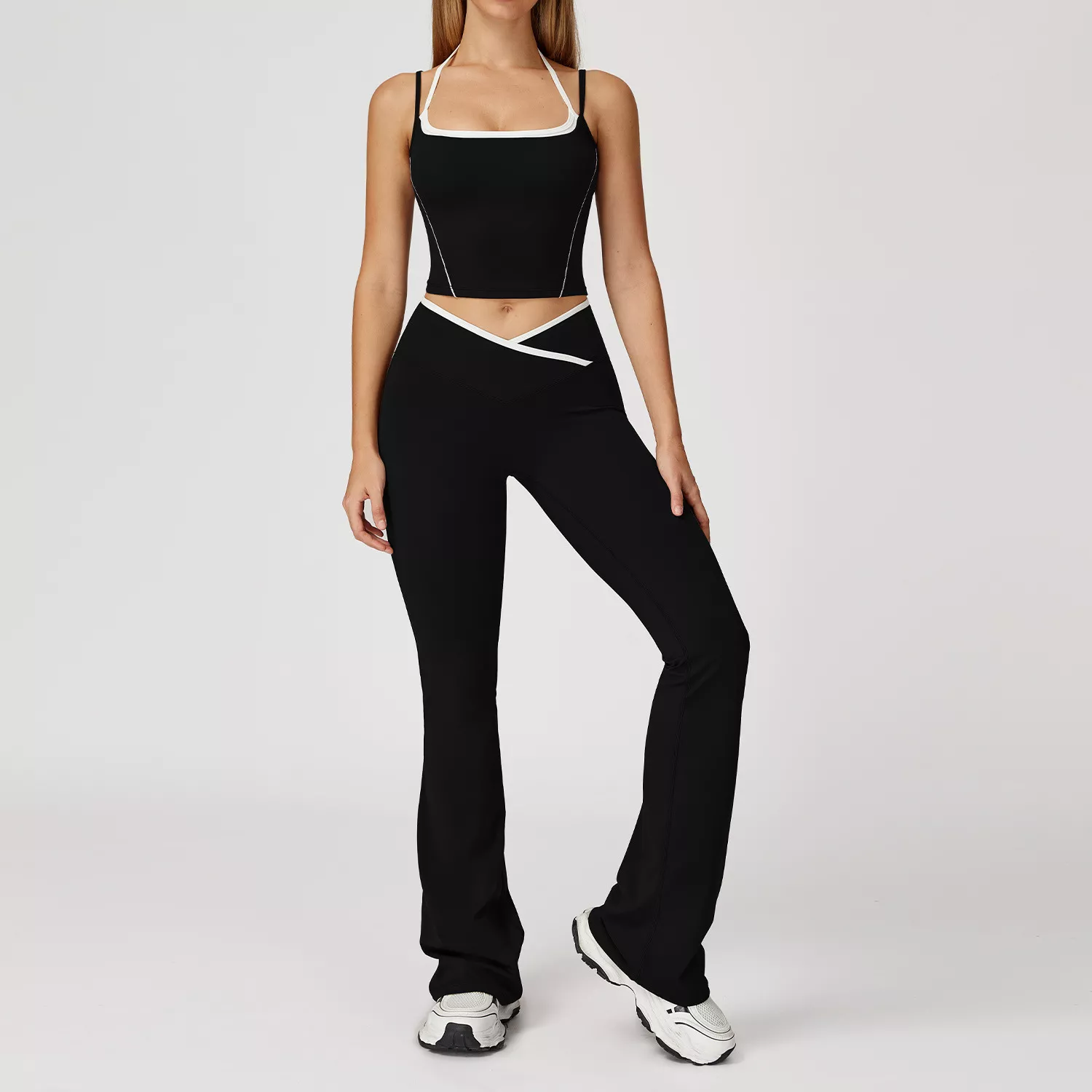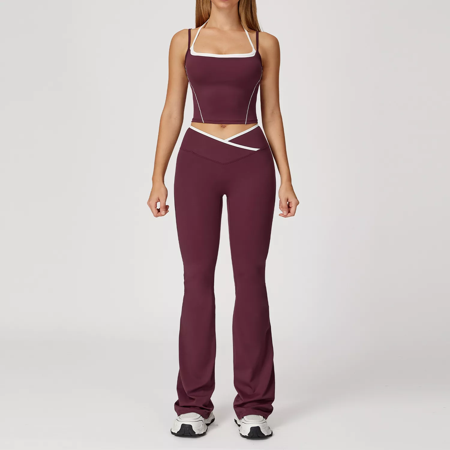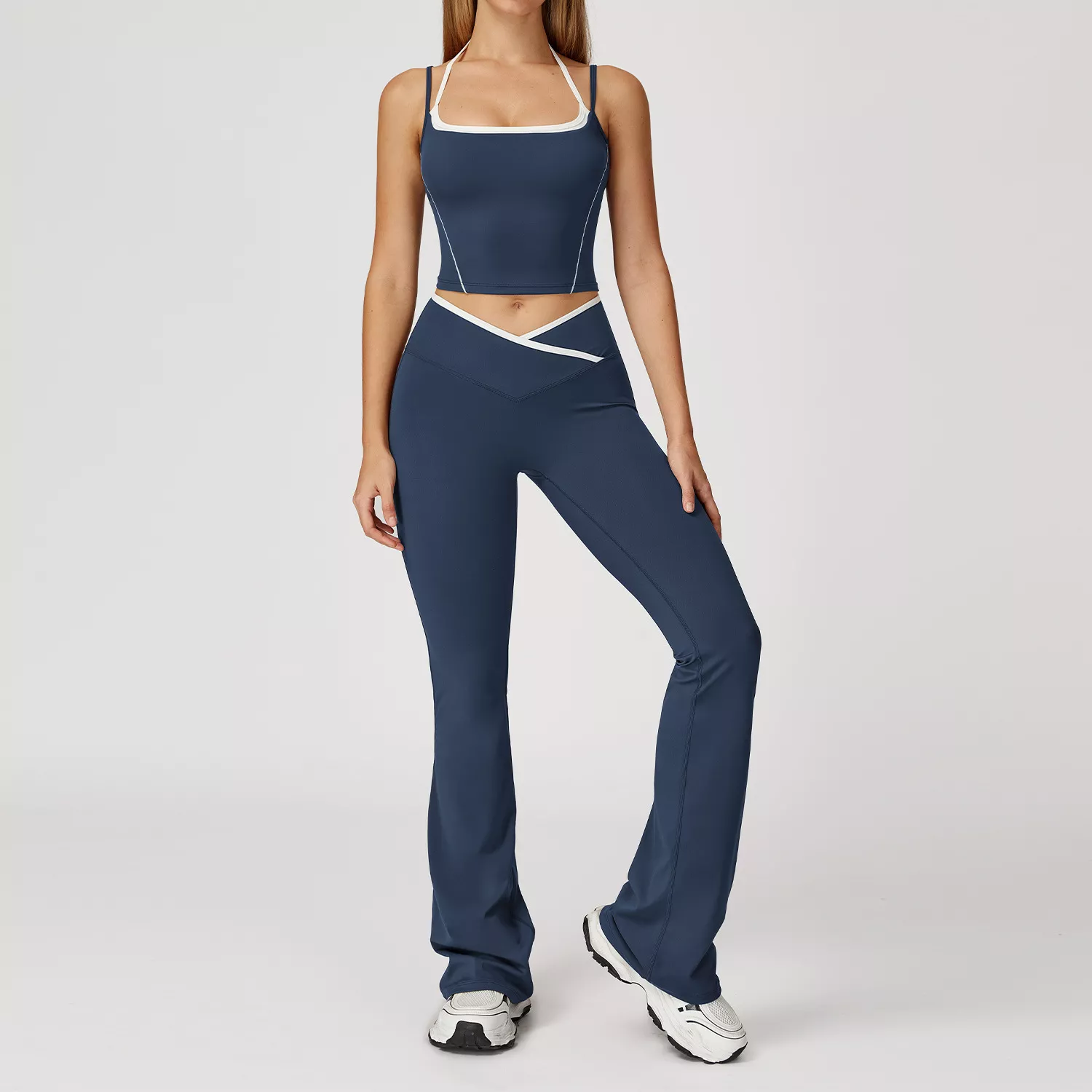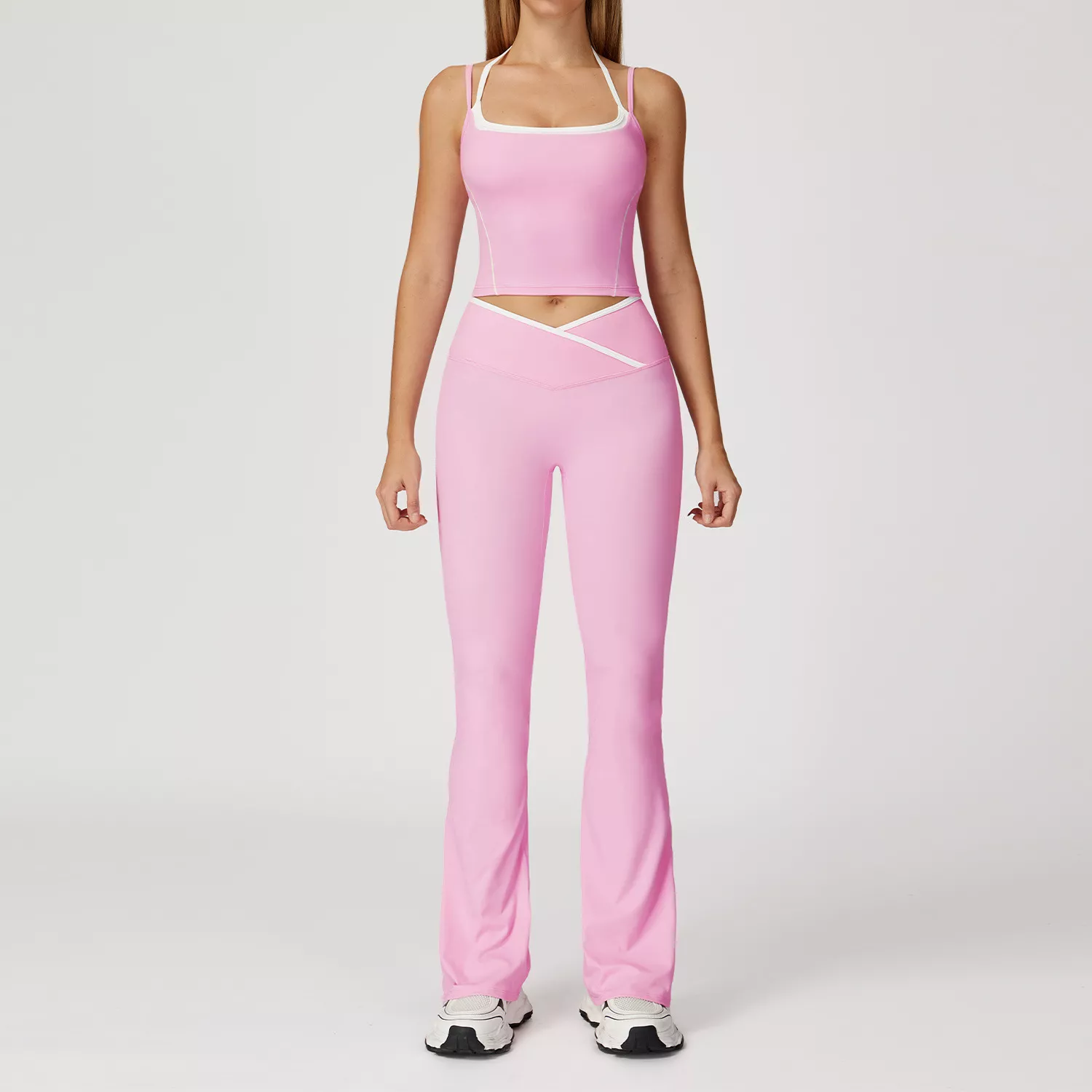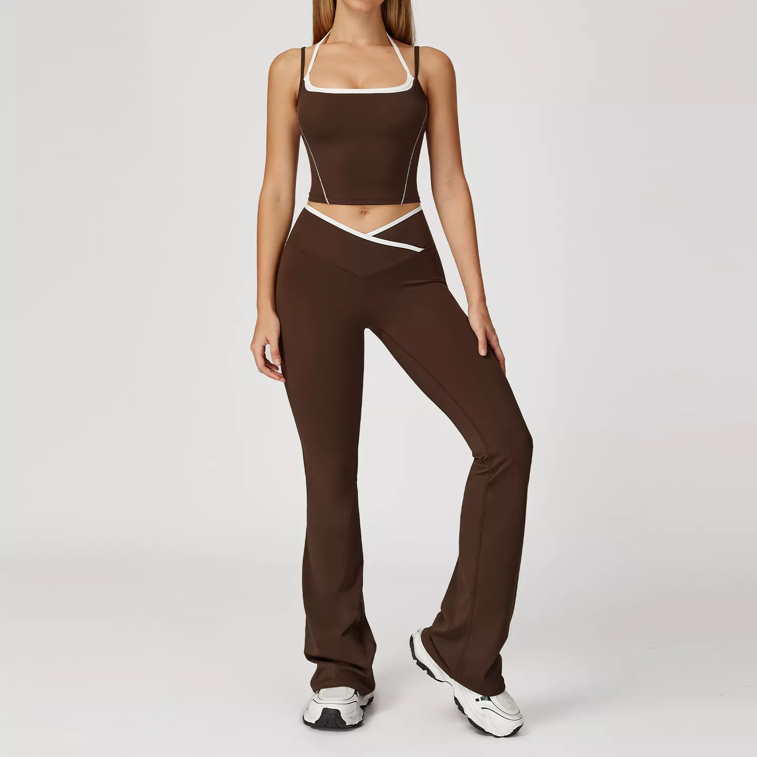 This set is more than just workout wear—it’s a statement. The unique push up design of the top offers both support and style, while the high waist pants elongate your legs and give you a sculpted, confident look. The bell bottom cut adds a trendy twist, making this set versatile enough to wear outside the gym. Pair it with sneakers for a sporty vibe or with casual accessories for a chic athleisure look.
