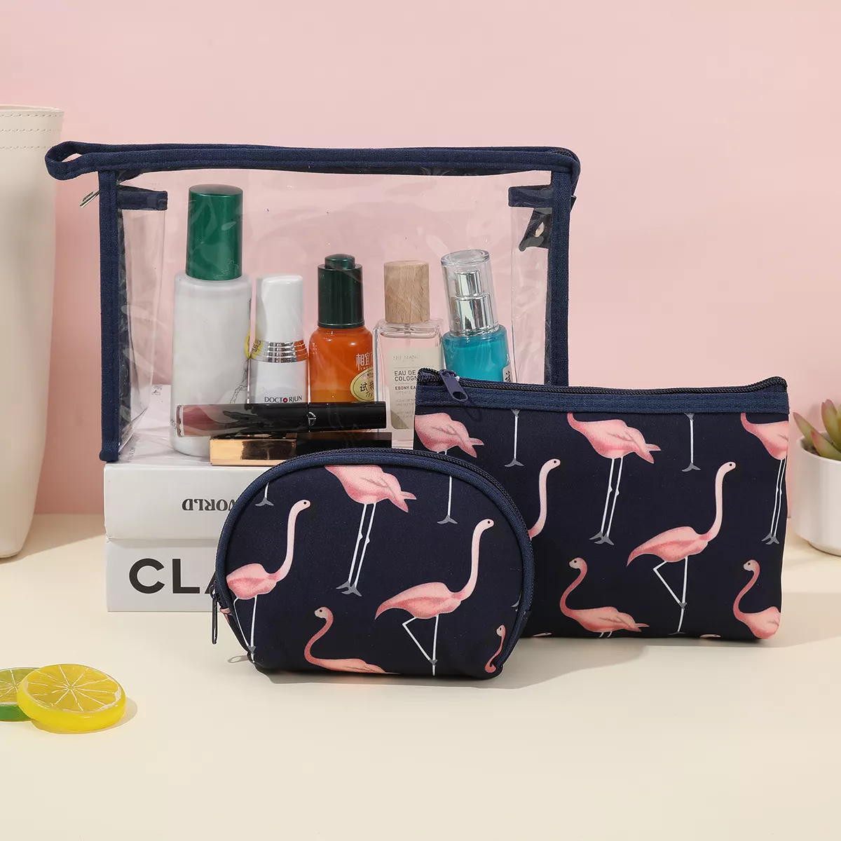 Unlike ordinary cosmetic pouches, this set doesn’t just offer storage — it brings a cheerful vibe to your routine. The cartoon flamingo design makes it unique and eye-catching, while the transparent waterproof PVC ensures both durability and convenience. This is not just a bag set; it’s a blend of fashion, function, and fun.