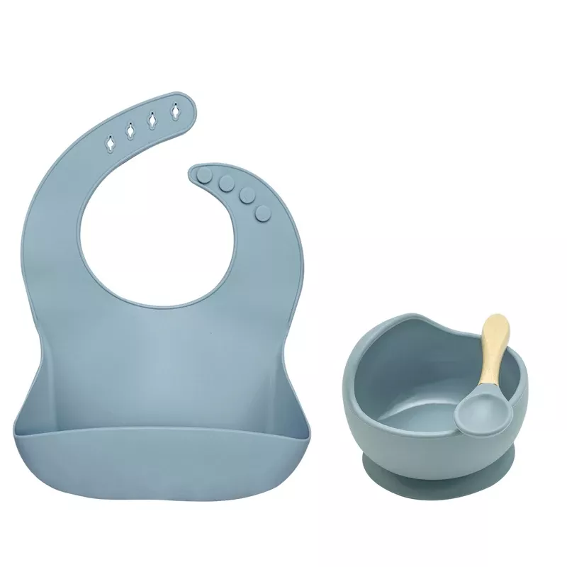 3PCS Silicone Baby Feeding Set with Suction Bowl, Spoon & Waterproof Bib