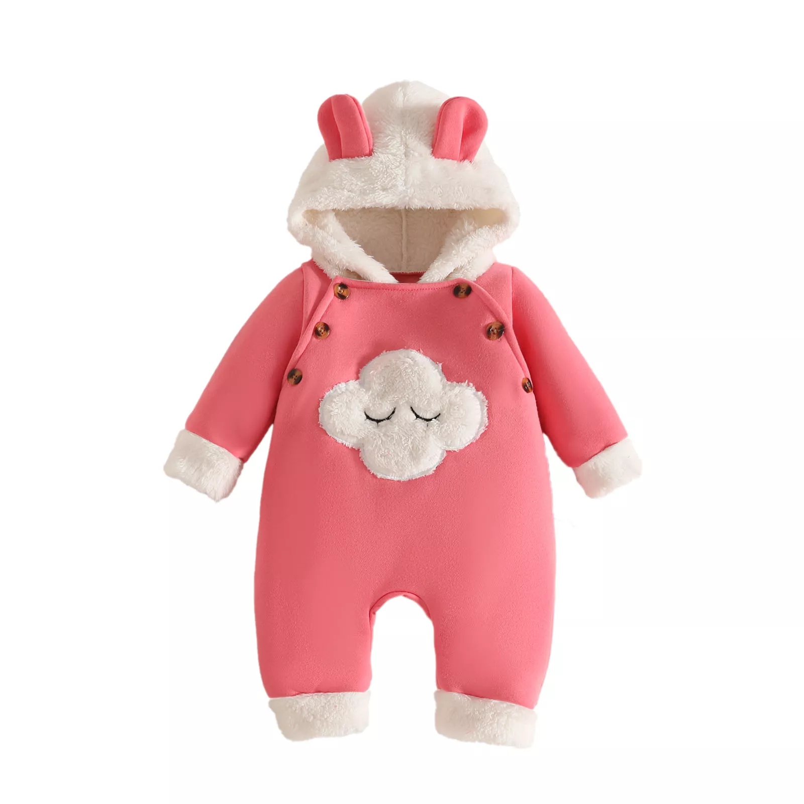 Wrap your newborn in cloud-like comfort with this adorable Baby Hooded Jumpsuit. Designed for chilly days and cozy nights, this unisex romper combines warmth, style, and practicality in one irresistibly cute outfit. Featuring soft furry trim and an enchanting embroidered cloud design, it’s perfect for making precious memories while keeping your baby snug from head to toe.