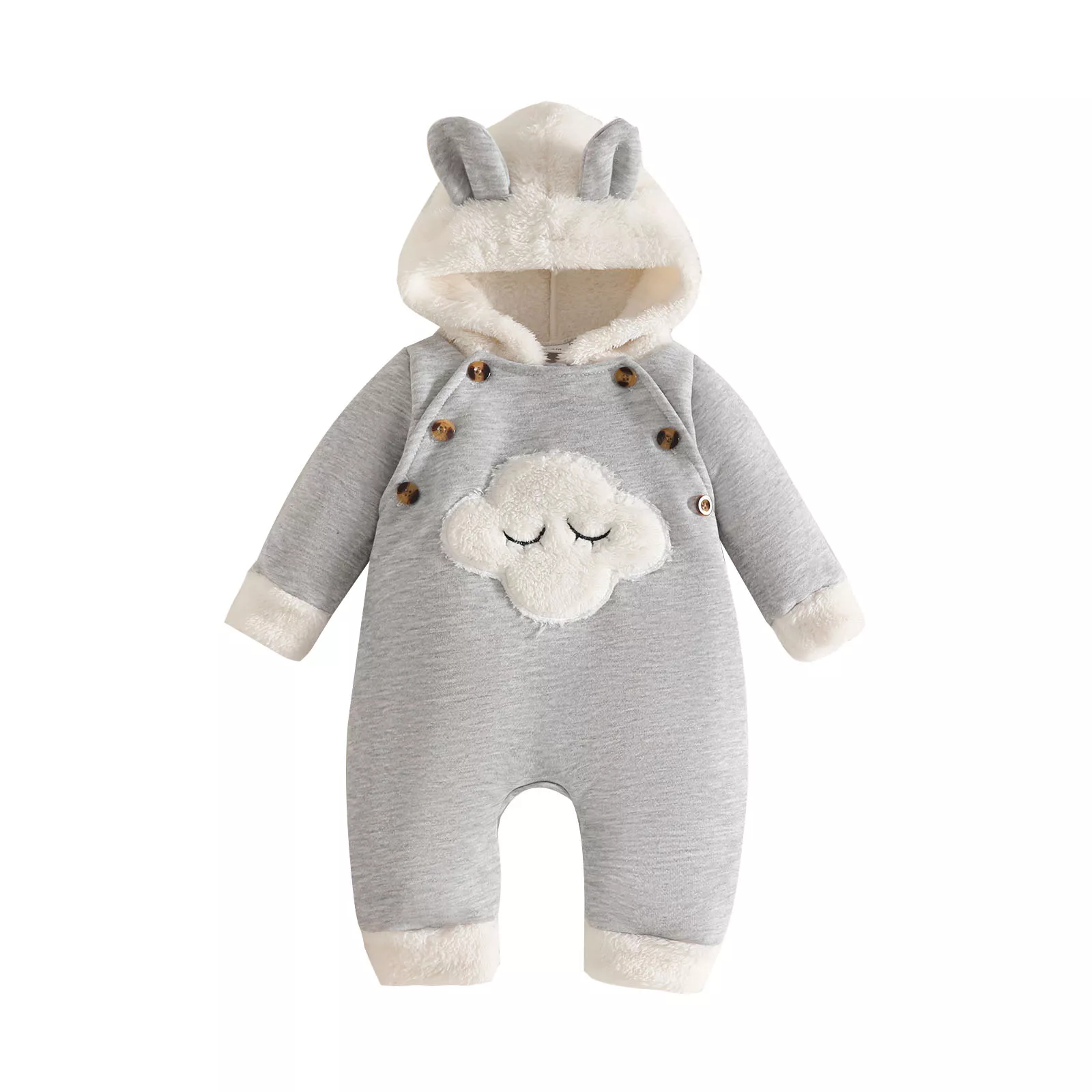 Baby Hooded Cloud Romper with Furry Trim – Unisex Newborn Jumpsuit