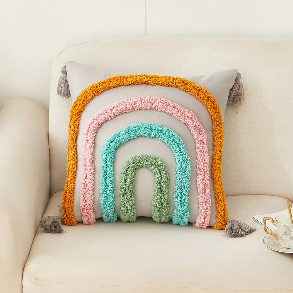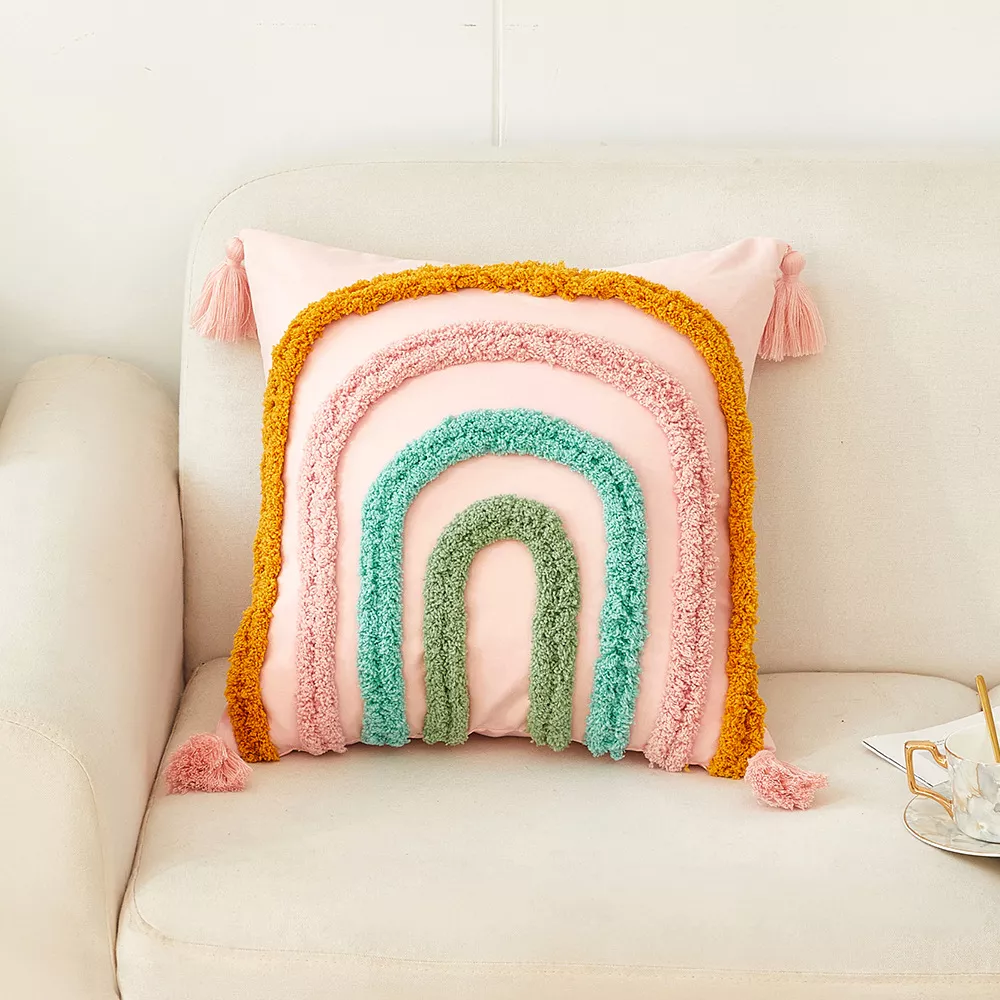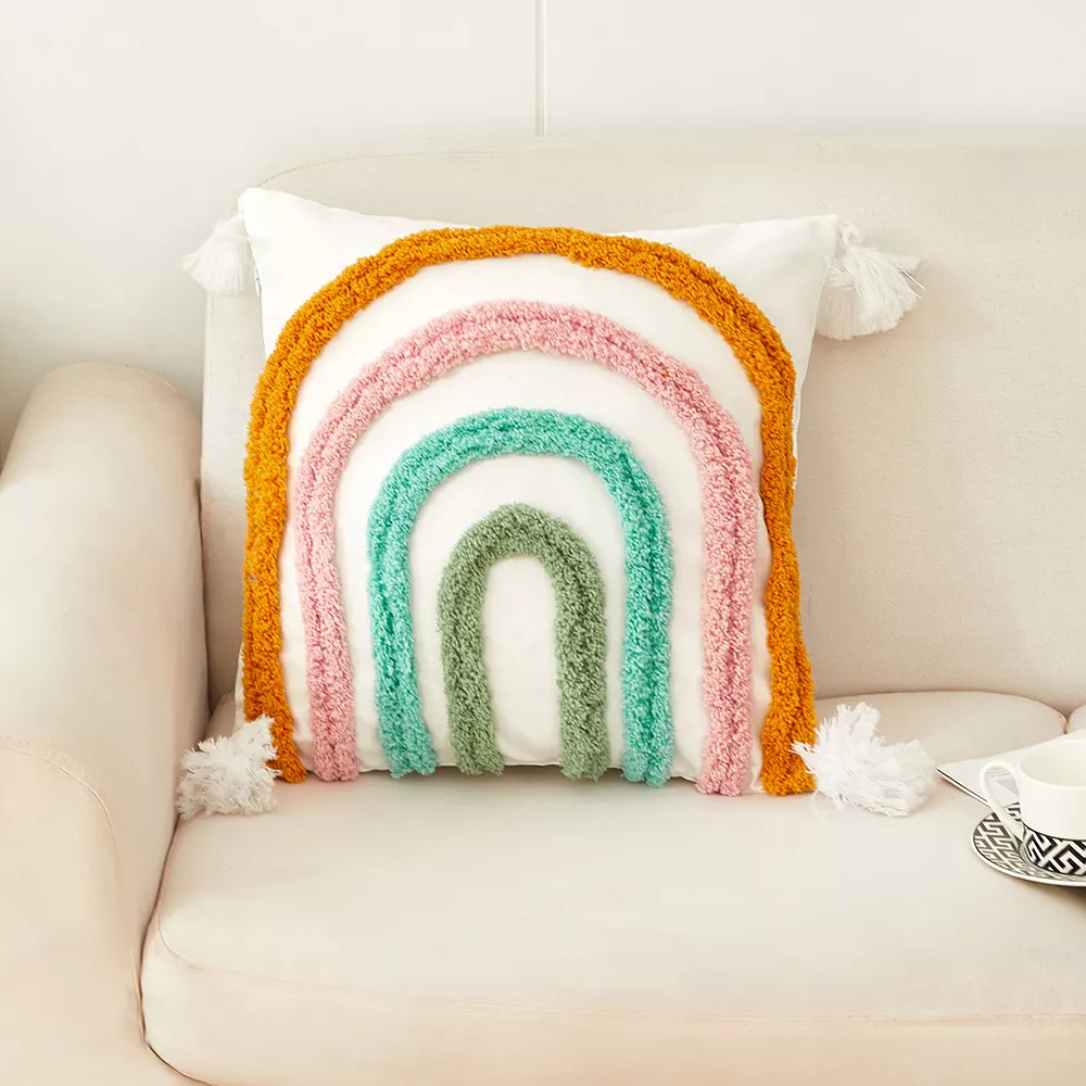 • Unique texture – Embroidered tufting and tassels create a cozy, handmade feel.