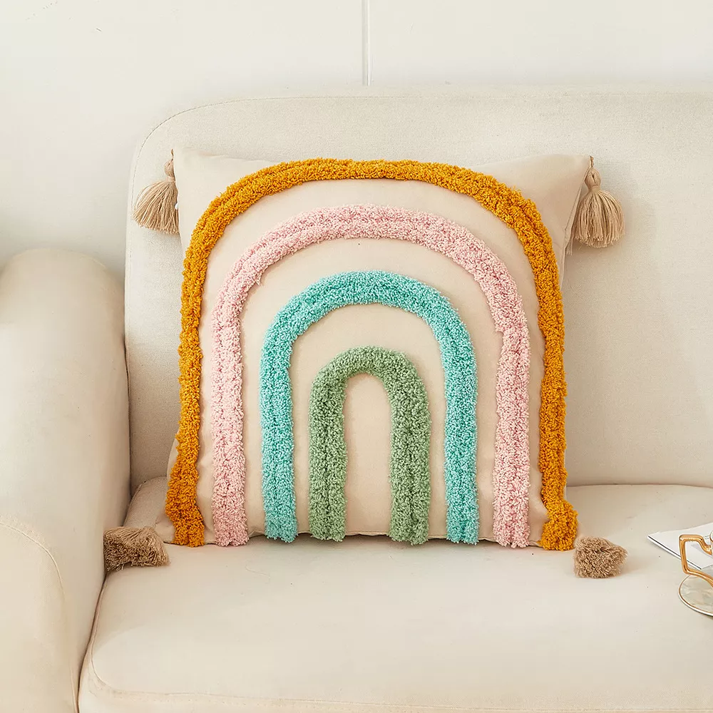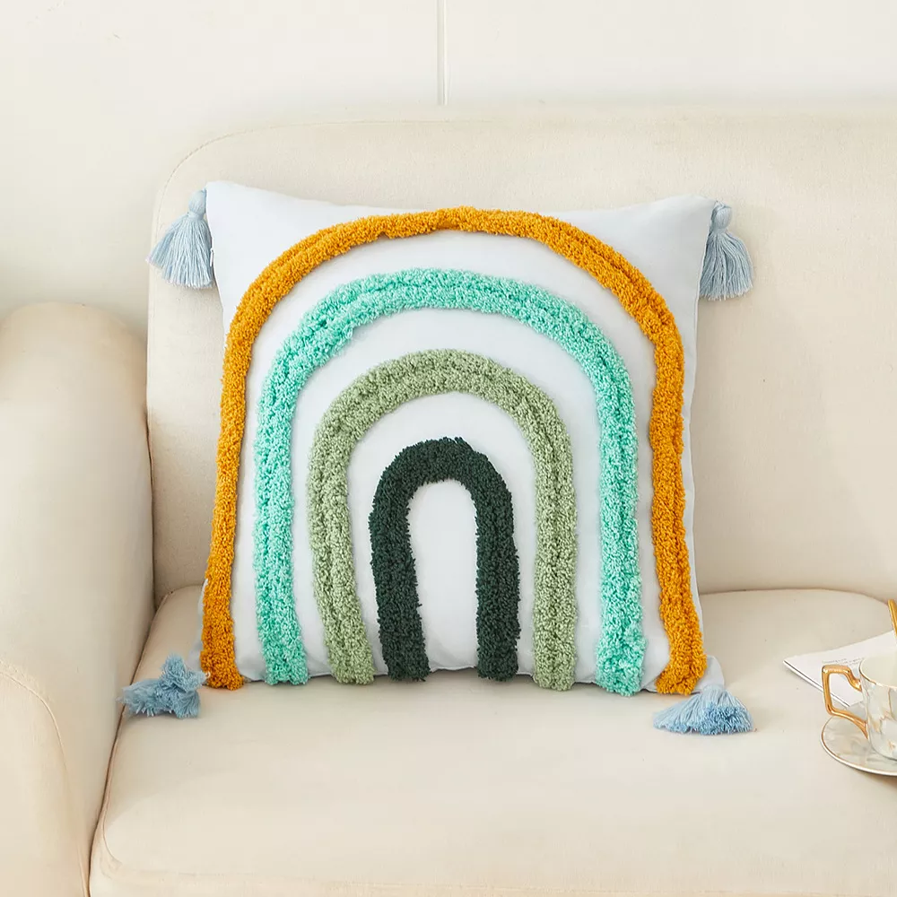Add warmth, style, and a touch of artistry to your home with this Bohemian Tufted Geometric Arch Pillow Cover. Designed with rich textures and playful tassels, this decorative cushion cover instantly upgrades any sofa, chair, or bed. Its vibrant yellow geometric pattern and hand-tufted details bring life to any room, making it a perfect accent piece for modern, eclectic, or boho-inspired interiors.