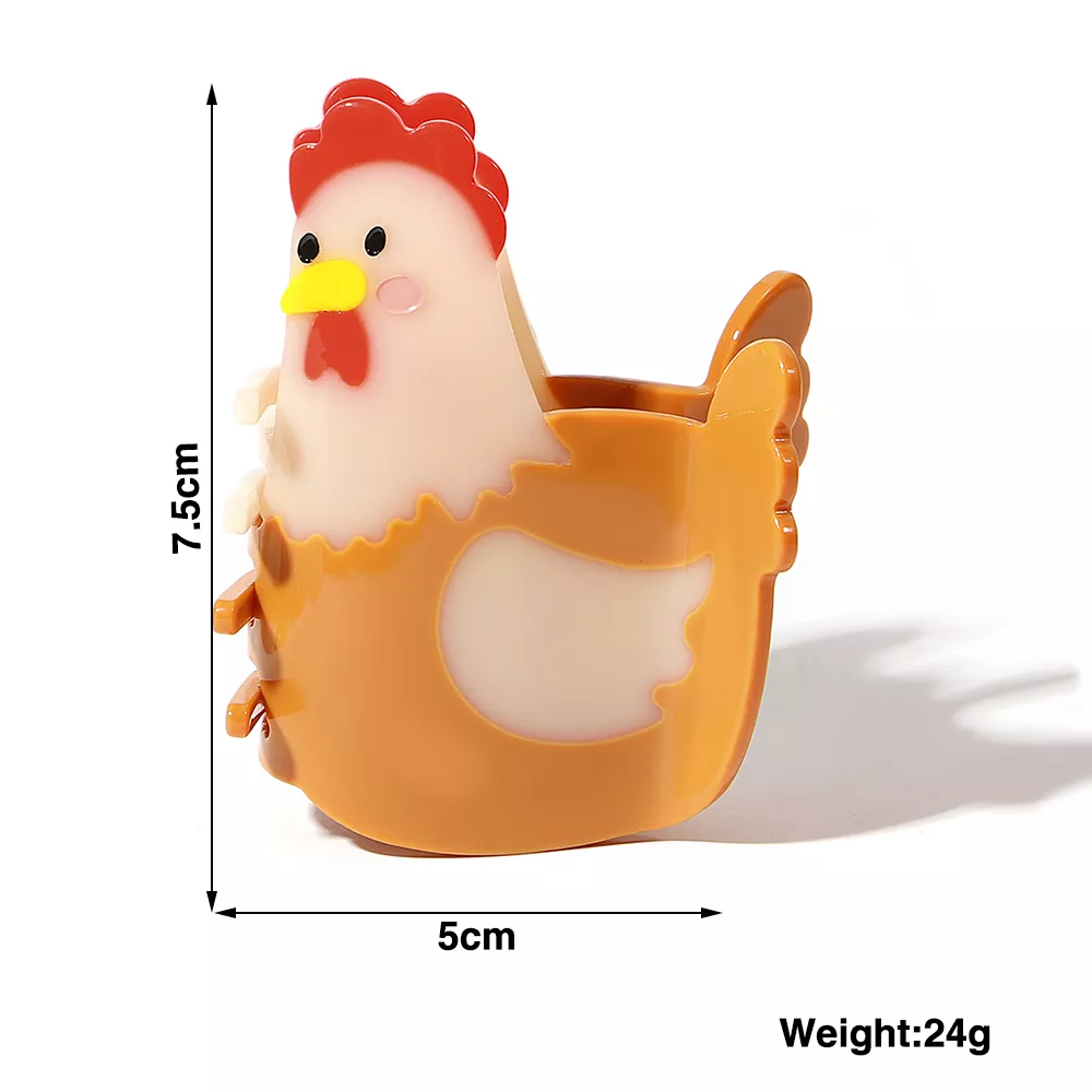 This hair clip is special because it combines whimsical character design with quality craftsmanship. The cute cartoon chicken features delightful details from its cheerful beak to its perky comb, creating a personality-filled accessory that stands out from ordinary hair clips. What makes it truly special is the pieced acrylic construction that gives dimension and depth to the design, making the chicken appear almost three-dimensional in your hair. The high-quality acetate and acrylic materials ensure the vibrant colors stay bright, while the strong grabber mechanism provides a secure hold. It’s this combination of creative design, quality materials, and reliable function that makes it exceptional.