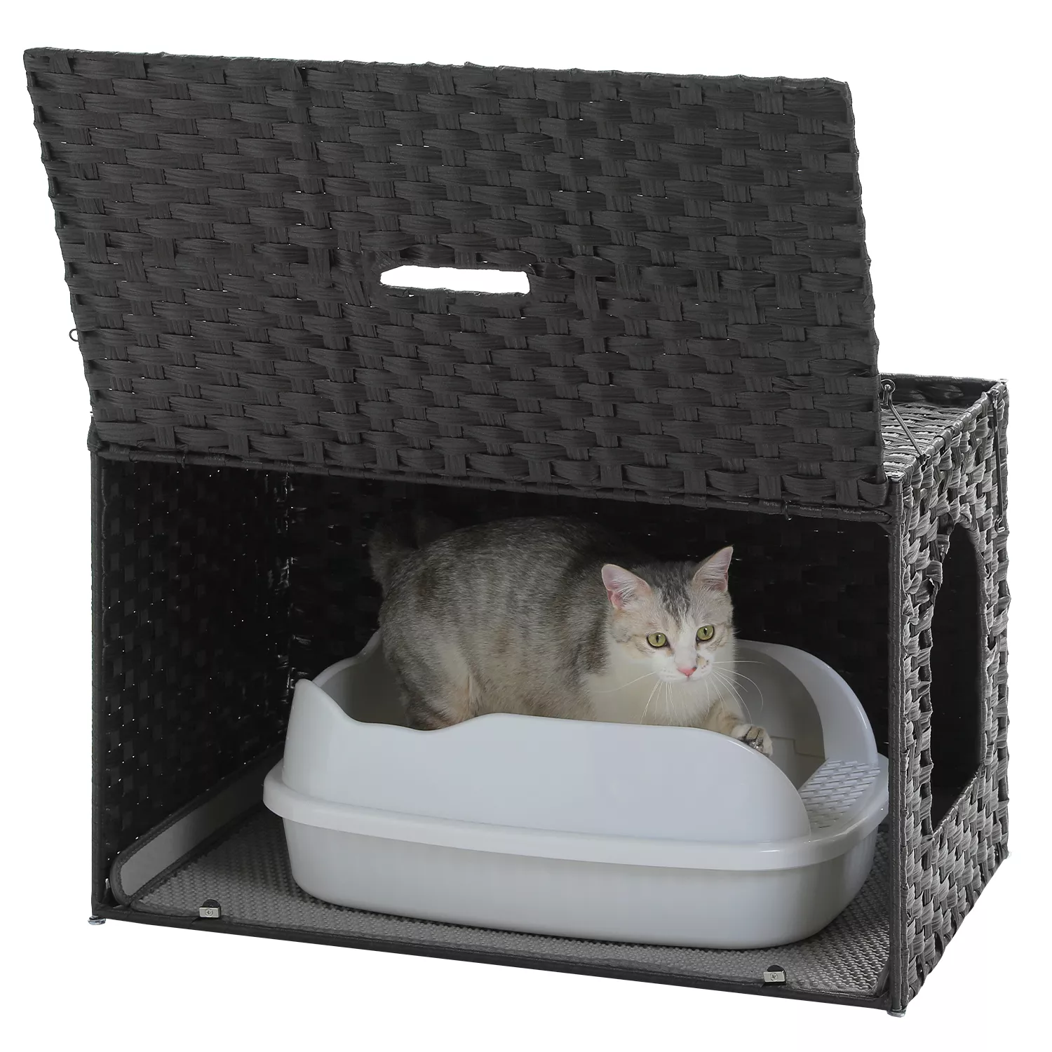 Say goodbye to unsightly litter boxes and hello to a chic solution your cat will love. This handwoven rattan cat litter box enclosure combines modern design with practical functionality, giving your furry friend a private space while keeping your home clean and stylish. Available in neutral colors like grey, beige, black, and brown, it fits effortlessly into any décor.