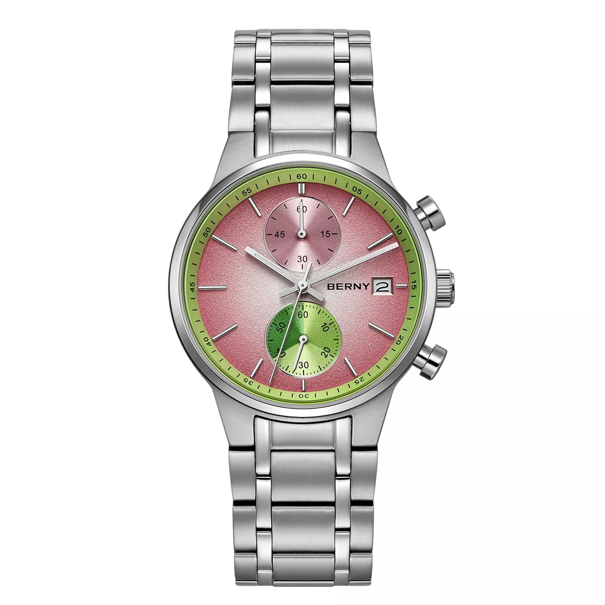 Unlike ordinary watches, this chronograph stands out with its balance of sporty charm and refined sophistication. Its mid-sized case (1.5 inches diameter) ensures a comfortable fit on the wrist, while the folding clasp keeps it secure all day long. The weight feels substantial without being heavy, giving it the premium feel you deserve.