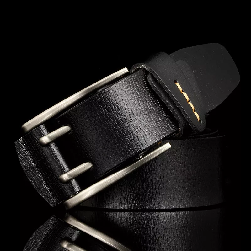 Men’s Genuine Leather Double Pin Buckle Casual Belt
