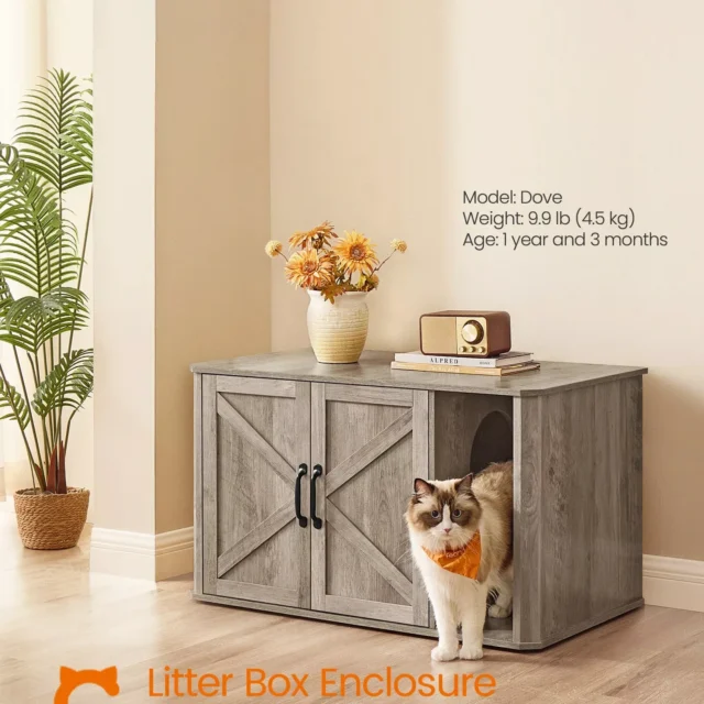 • Durable Construction: Made from high-quality particleboard, this litter box enclosure can support up to 165 lbs, making it sturdy enough to use as extra storage or even as a side table.
