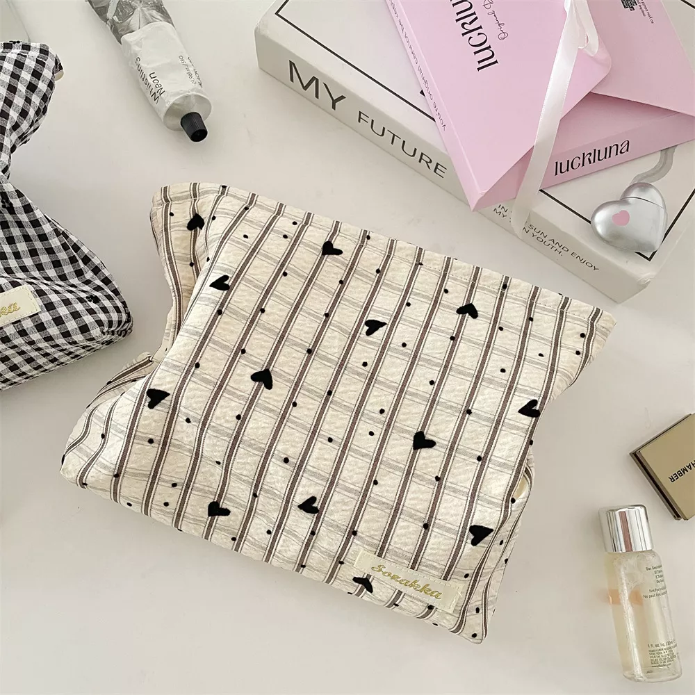 Unlike ordinary makeup pouches, this bag stands out with its unique plaid striped design and spacious interior. It blends fashion with functionality, making it more than just a storage bag—it’s an accessory that complements your lifestyle. Its durable construction ensures it’s built to last, while the elegant design makes it a joy to carry anywhere.