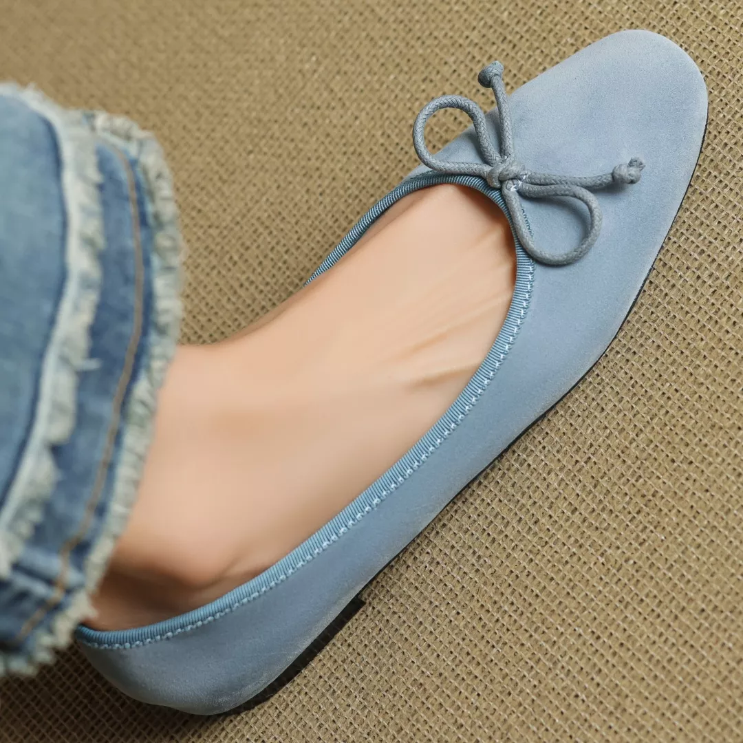 Plus Size Suede Leather Ballet Flats with Bowtie