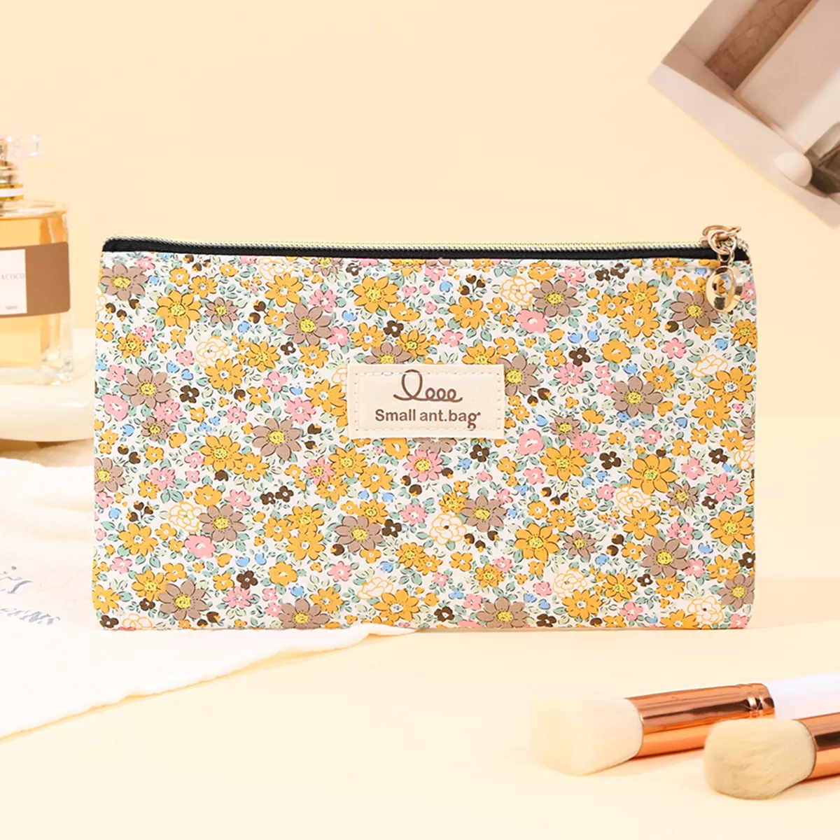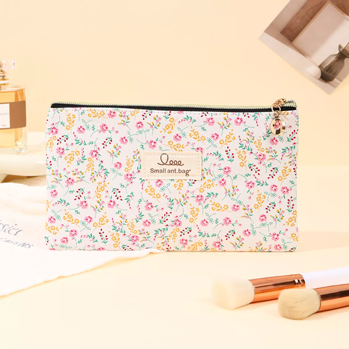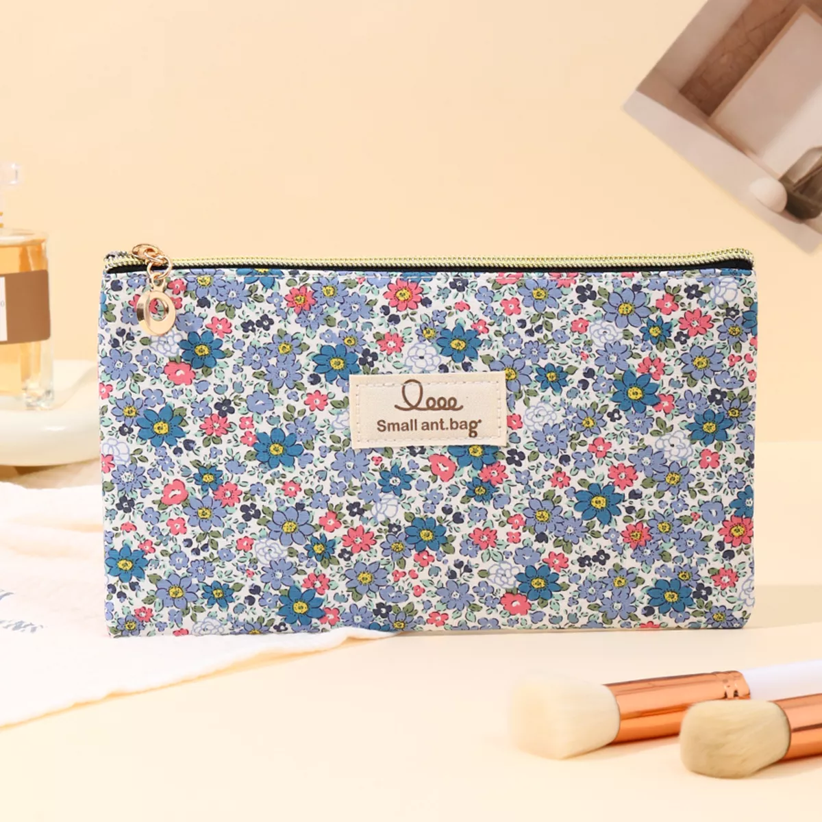 Portable Minimalist Floral Makeup Bag – Waterproof Travel Cosmetic Storage