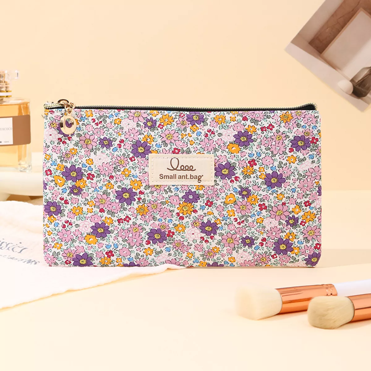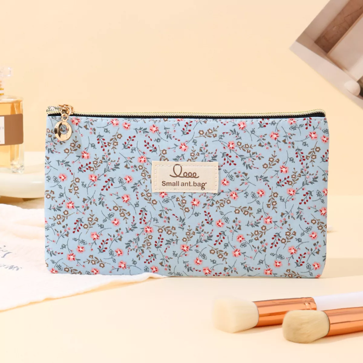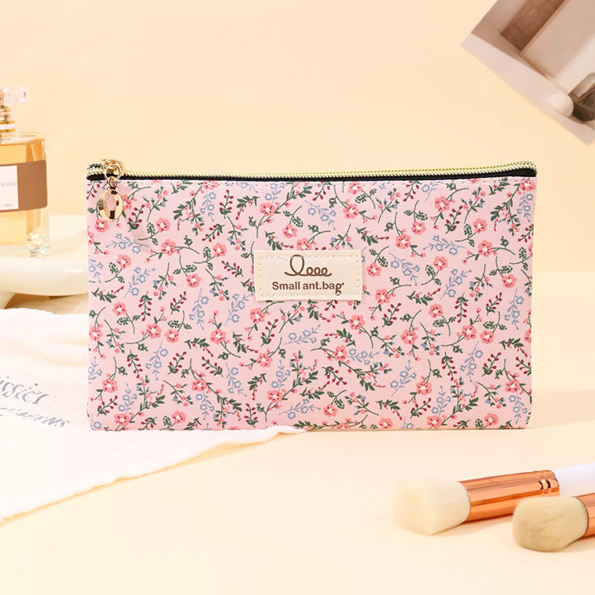 Portable Minimalist Floral Makeup Bag – Waterproof Travel Cosmetic Storage