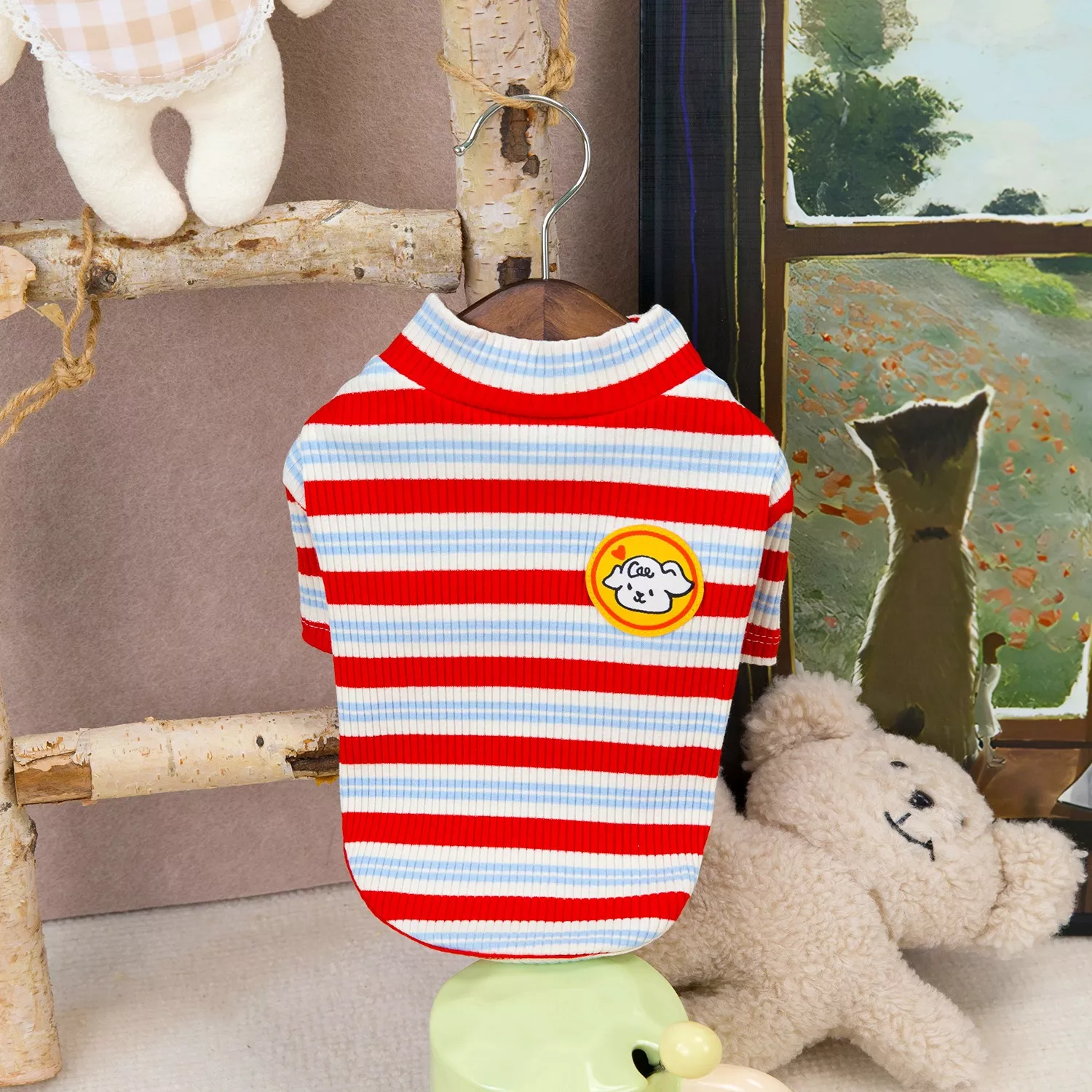 Red Striped Dog Vest Warm Turtleneck Shirt for Small Pets