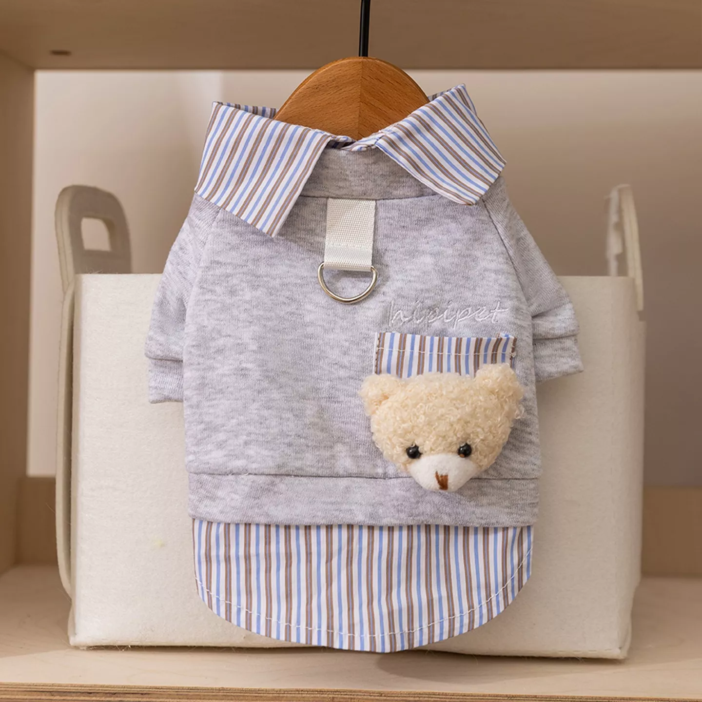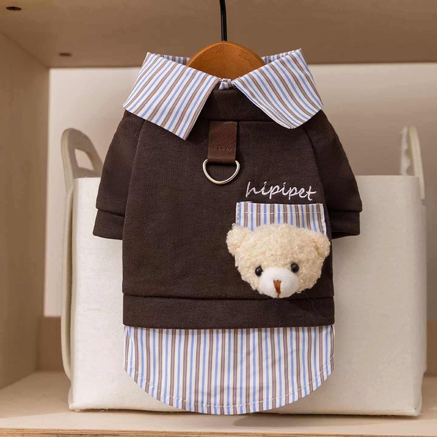 This isn’t just another pet sweater—it’s a new-season style that combines warmth, comfort, and fashion. With a faux two-piece design, it gives the appearance of layered clothing while being lightweight and easy to wear. Available in versatile grey and brown shades, it’s the perfect wardrobe staple for every dog with a stylish personality.
