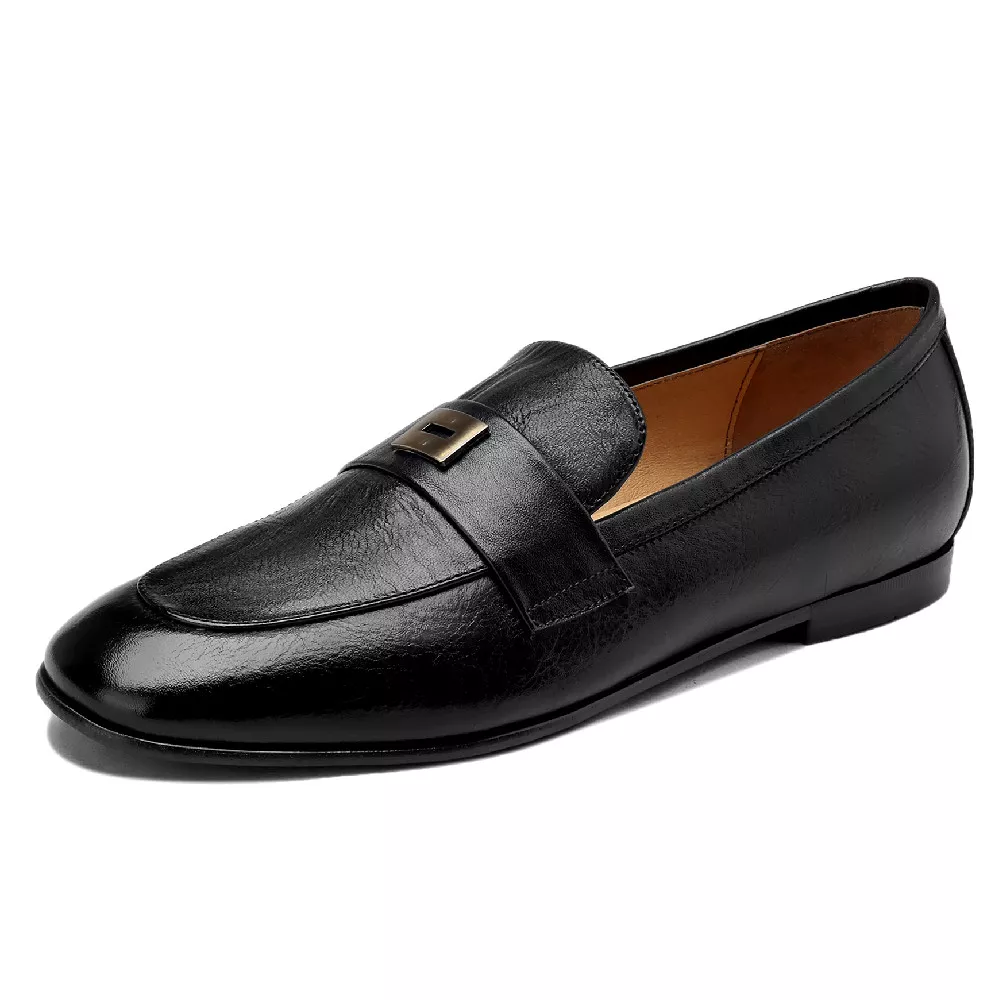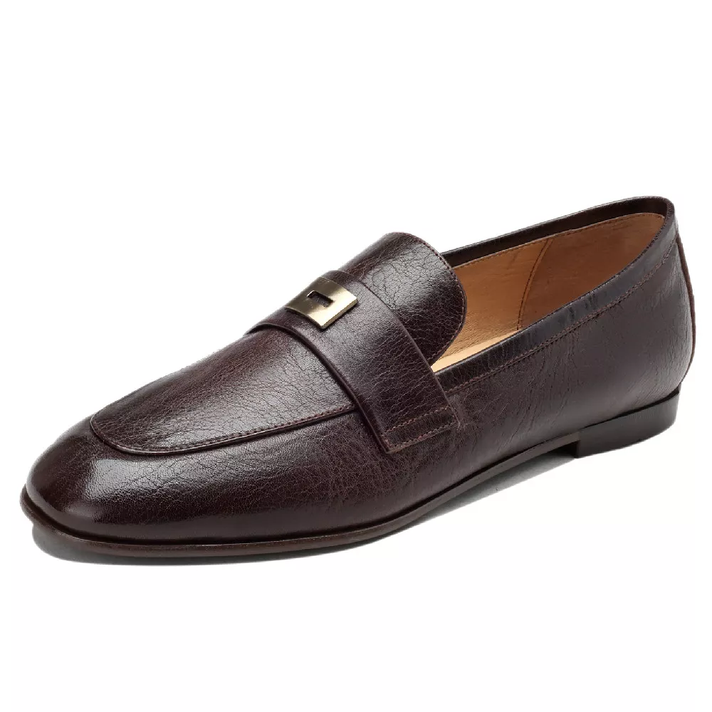Made from premium cow leather, the upper feels supple yet strong, providing long-lasting wear. The inside features breathable pigskin lining, while the sheepskin insole adds a plush feel underfoot. A subtle 0.4 inch (1 cm) heel offers just enough lift to keep your feet supported, while the classic round toe ensures a roomy, natural fit. The sleek metal decoration on the front adds a touch of modern flair, making these moccasins versatile enough to pair with jeans, skirts, or even tailored trousers.