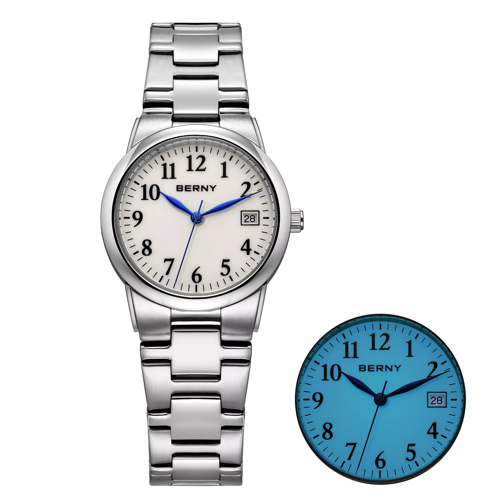 • Easy to read day or night thanks to the luminous dial and clear Arabic numeral markers.