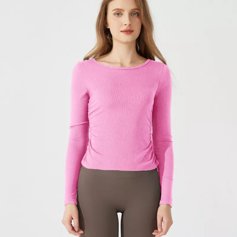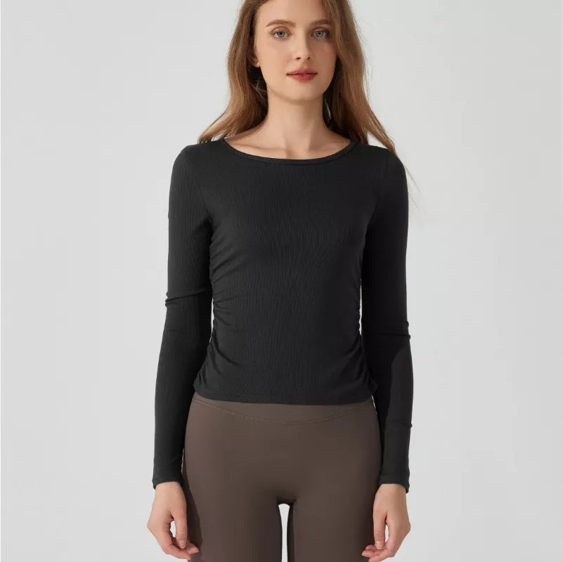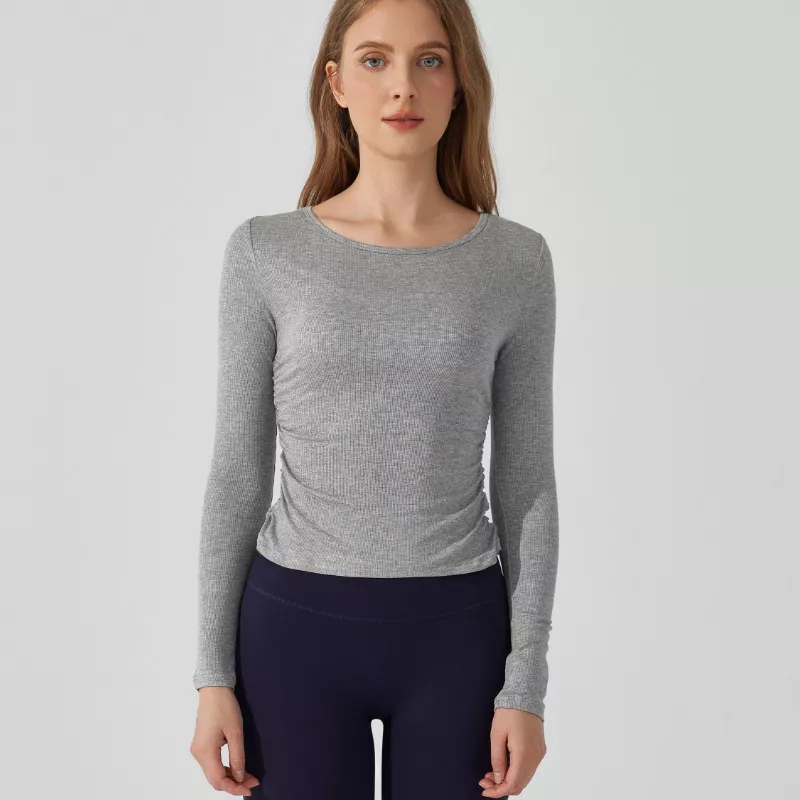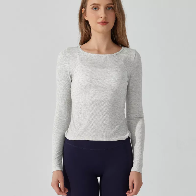 Women’s Slim Fit Long Sleeve Yoga Top – Breathable Ribbed Sportswear
