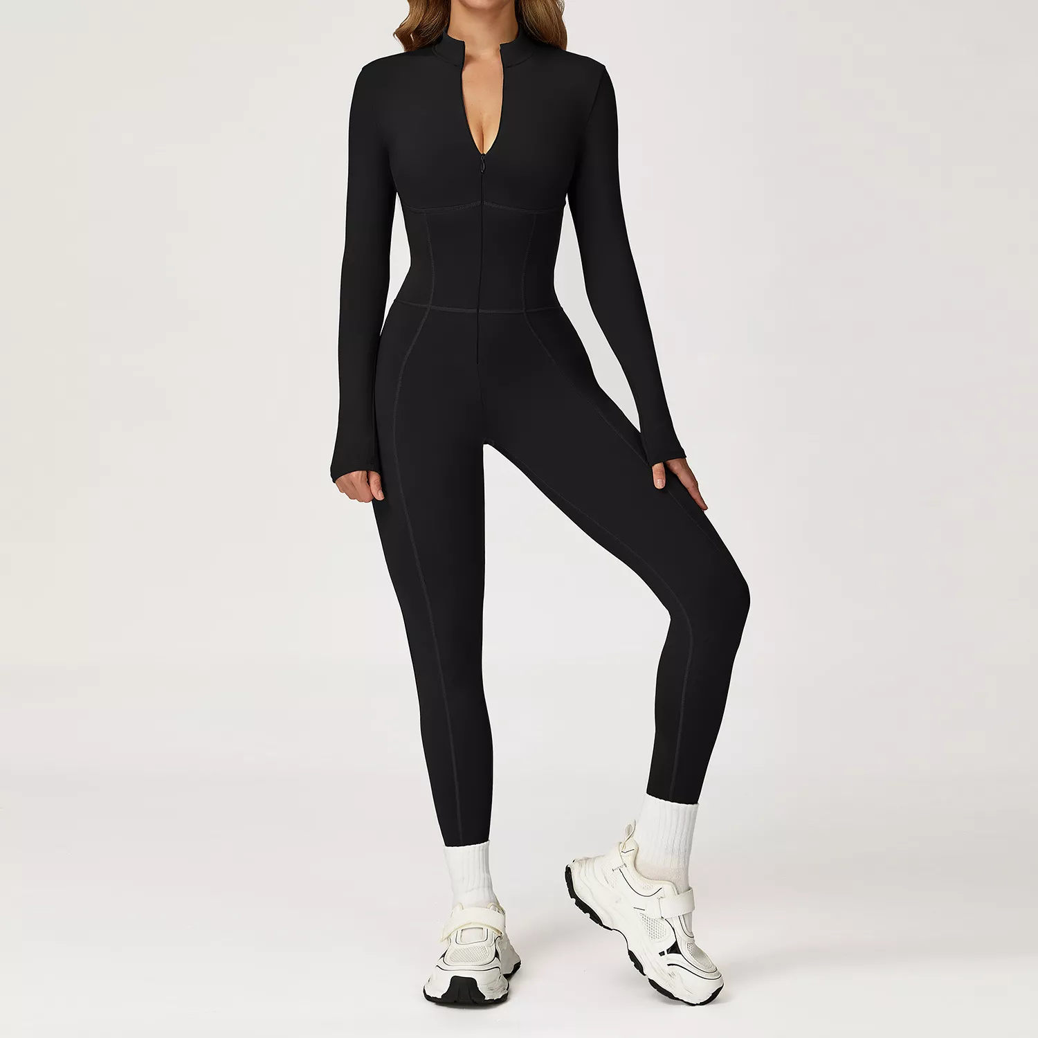 Women’s Zipper Sports Bodysuit Yoga Jumpsuit – One-Piece Workout Outfit