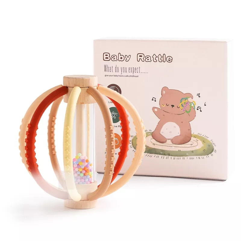 Wooden Baby Rattle & Silicone Teether Sensory Toy